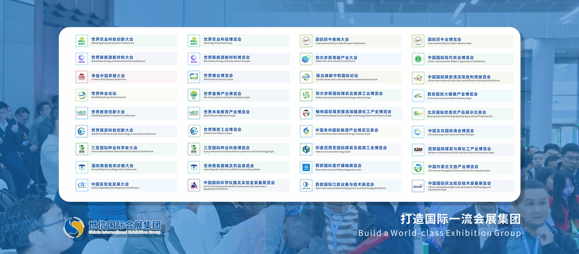 世信国际会展集团深耕畜牧、能源、农业等领域,合作政府、协会180+,服务企业10万+,年展览面积80万+平方米,被中国会展经济研究会评为"中国十佳品牌组展商”、国家商务部列为第一批展览业重点联系企业。